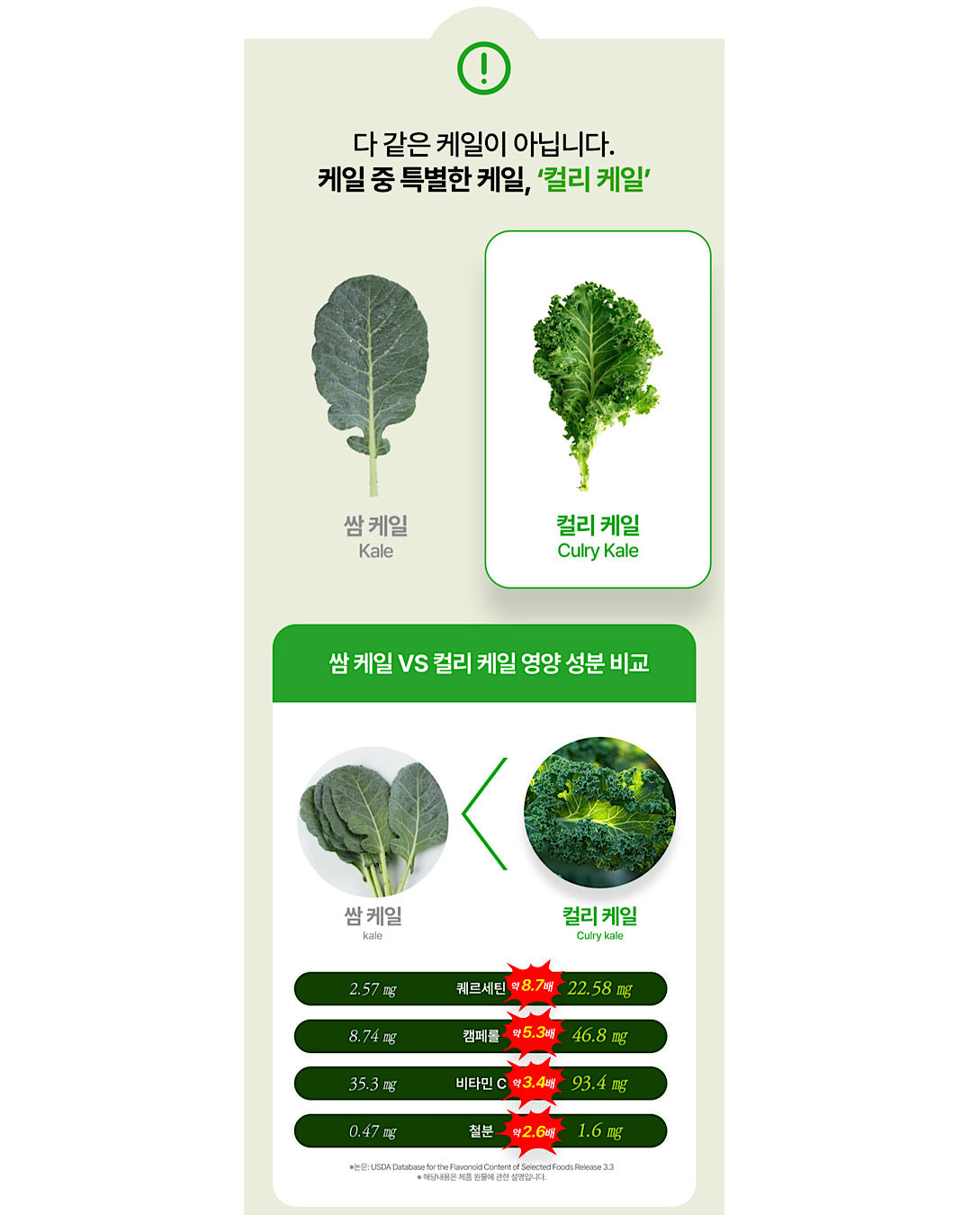 👉100% 미국산 유기농 베이비 컬리케일 사용