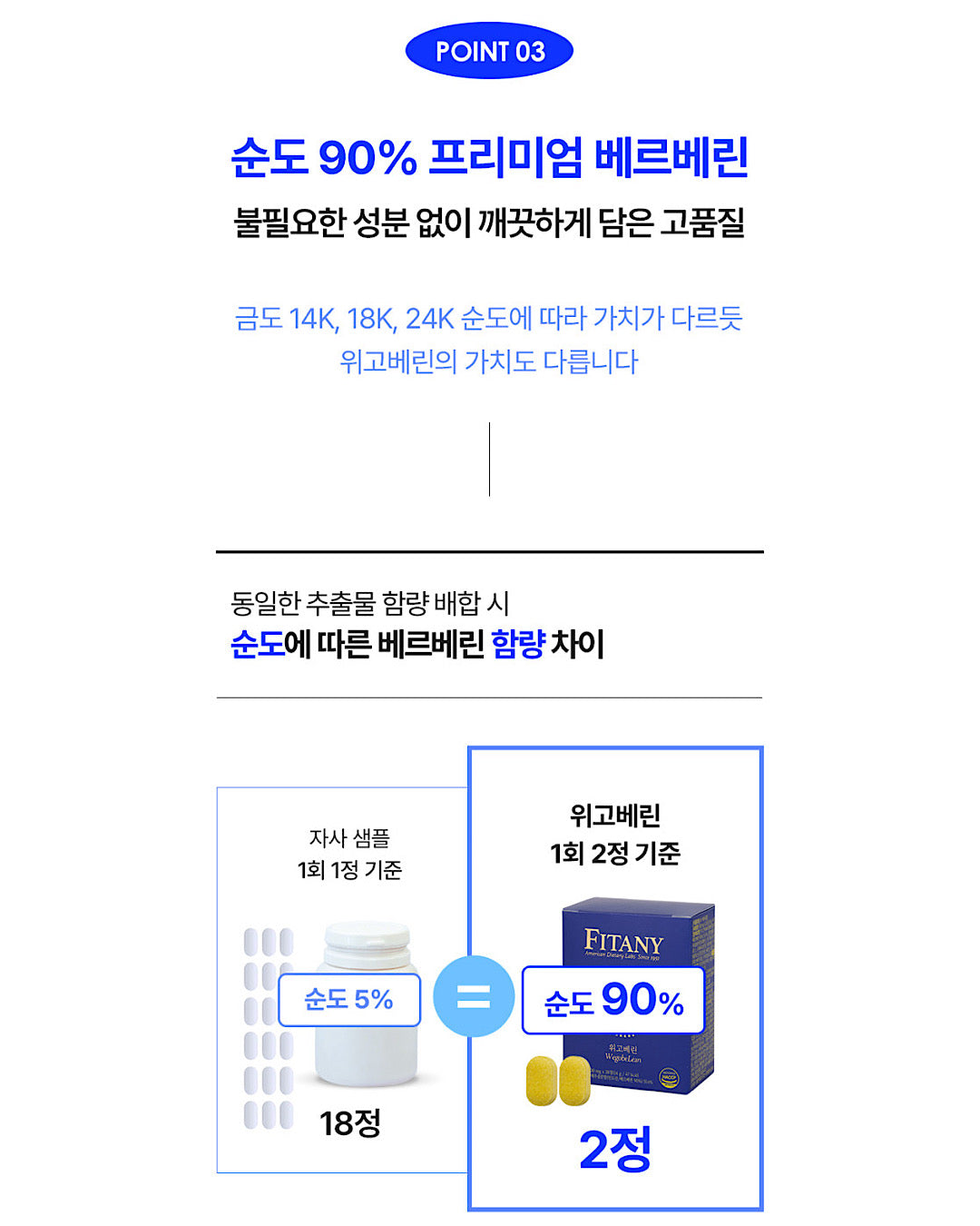 순도율 90%의 베르베린 원료만을 사용하여 본연의 힘과 효능을 고스란히!