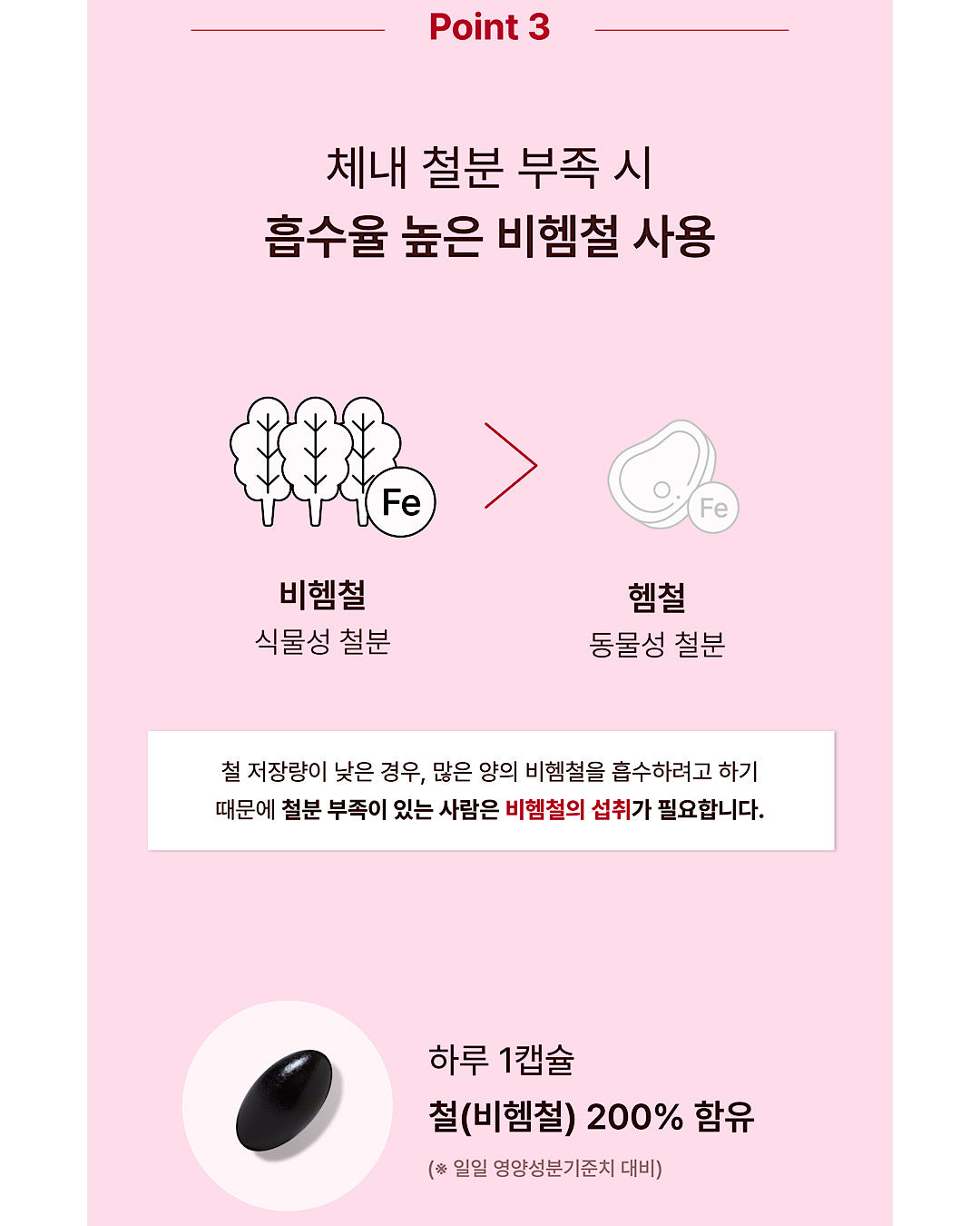 -체내 철분 부족시 흡수율 높은 비헴철(식물성철분) 사용