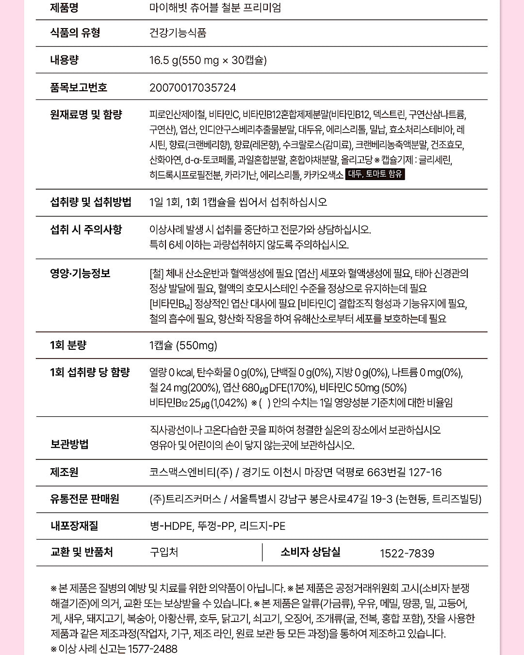(하루 1캡슐에 비헴철 200% 함유)